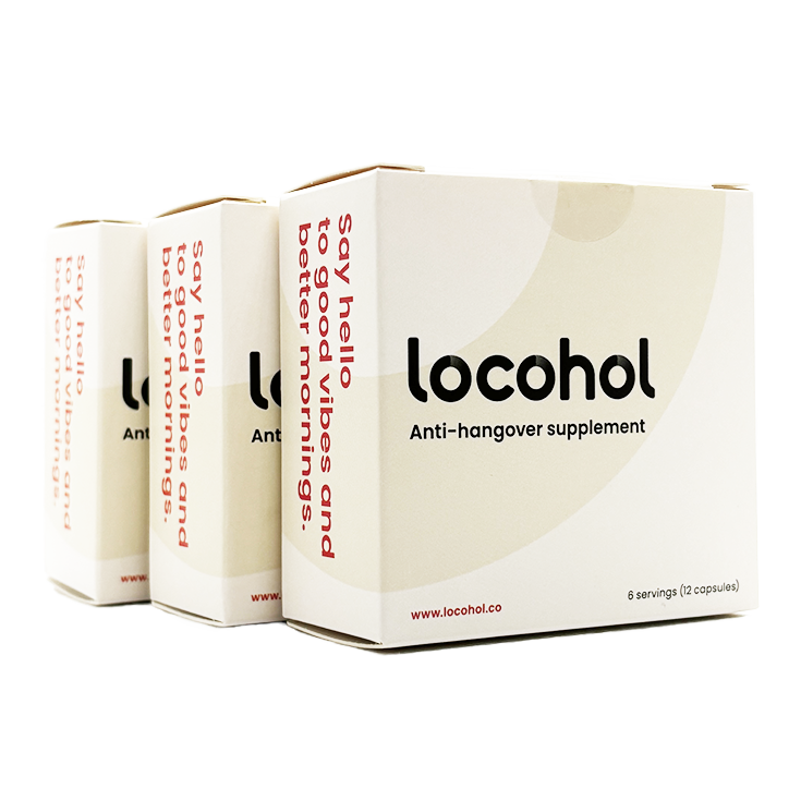 When drinking, your body turns alcohol into acetaldehyde, and that's the troublemaker that's behind all the flushing, the hangovers, the nausea – you name it! Locohol® works by preparing and protecting your liver with the highest quality all-natural essential vitamins and antioxidants to help your body recover faster.